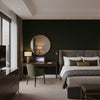This wallcovering features a dark background with a pattern of varying sized circles in a muted green hue. The design offers a modern and subtle geometric element, suitable for creating a sophisticated and understated ambiance in a variety of spaces.