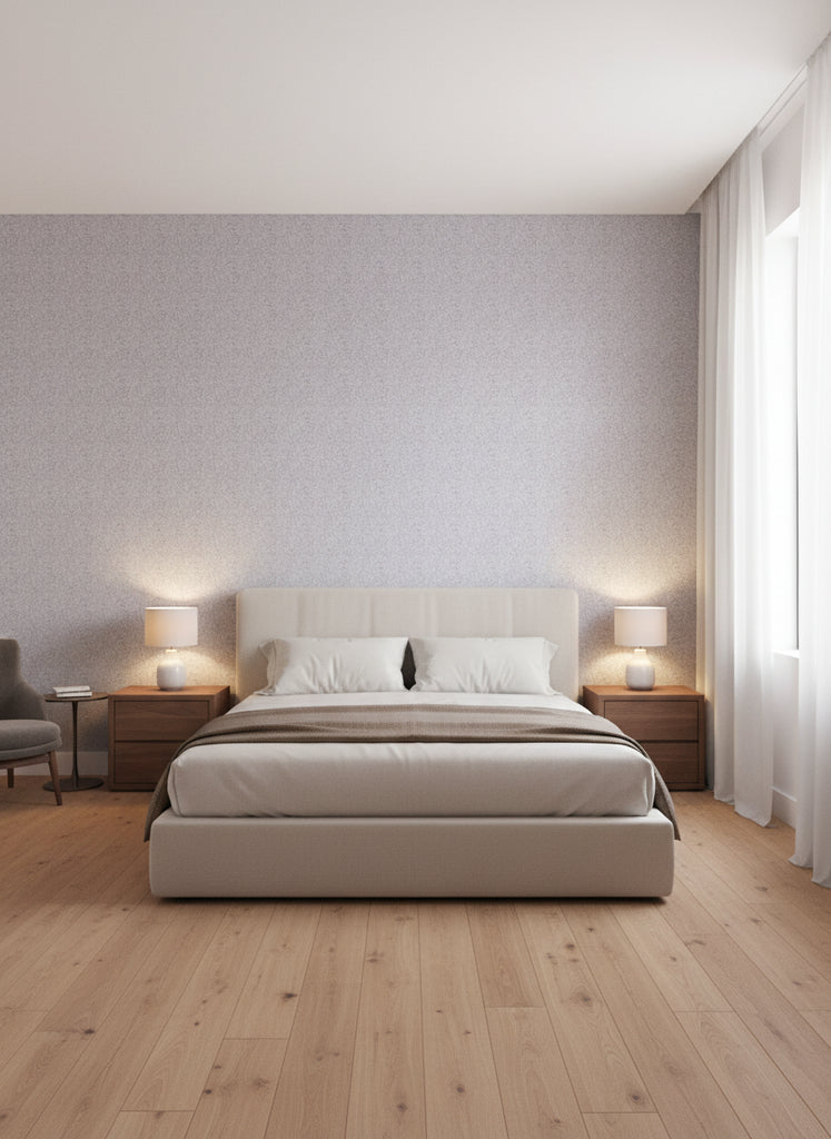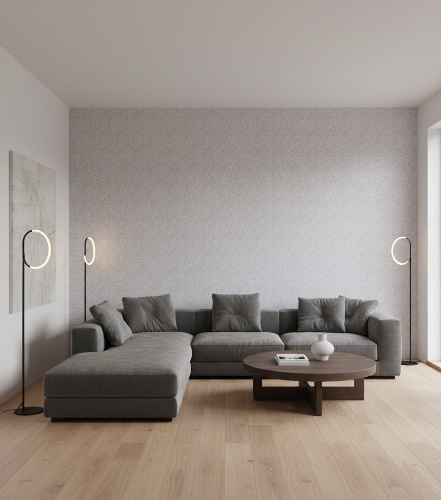 This wallcovering features a subtle geometric pattern in varying shades of gray, creating a sophisticated and modern look. The abstract design adds depth and texture to the wall, making it a versatile choice for various interior spaces. Its neutral color palette allows it to blend seamlessly with different decor styles.