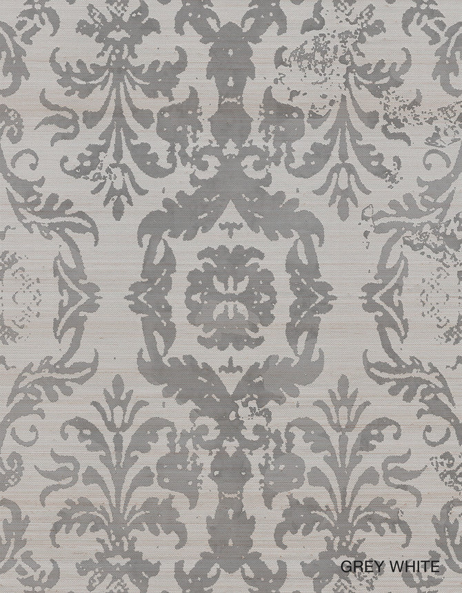 Antique Damask 1 Grey White On Silver Sisal Wallpaper | Paul Montgomery