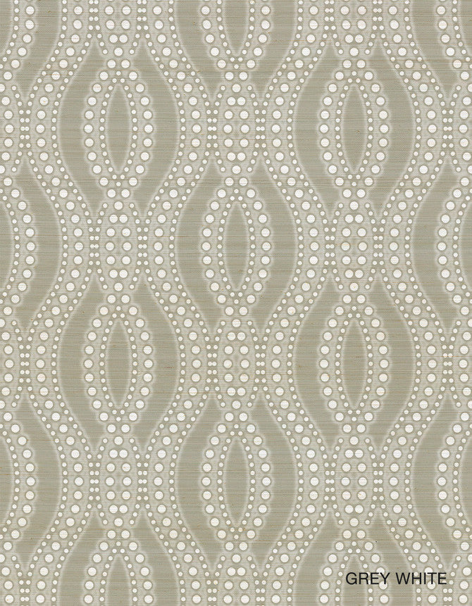 A fancy pattern of undulating strands of softened circles in a chain pattern give movement and balance to this timeless design. Shimmery silver shows through and adds a luxurious effect. This pattern is crafted by combining hand-painted finishing with geometric design. Sold in standard lengths from 1 to 4 yards. Pattern is 35" wide after trim by installer.