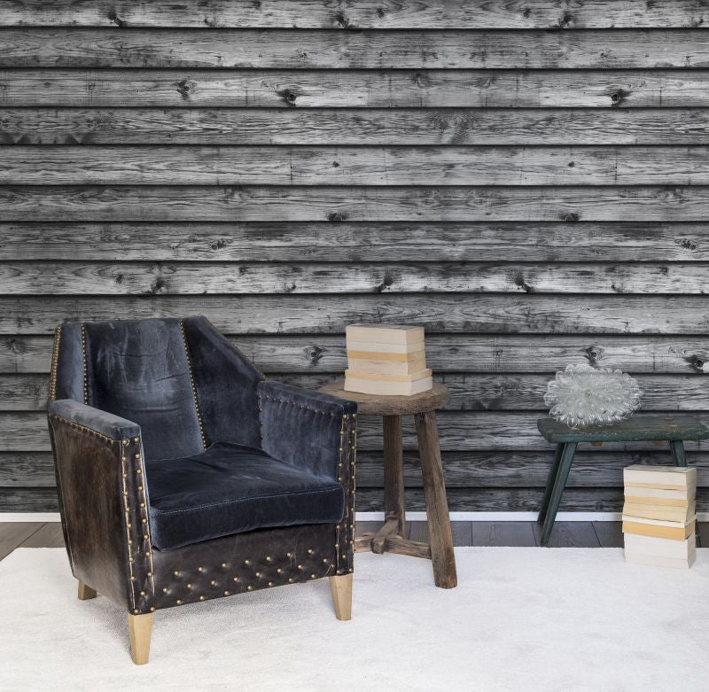 Horizontal Boards, black Wallpaper | Rebel Walls