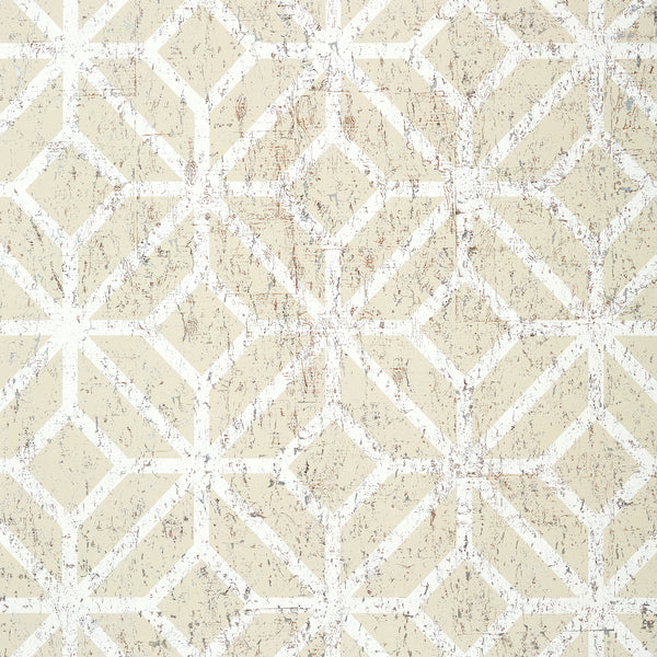 Mamora Trellis Cork White On Silver Wallpaper | Thibaut Wallpaper