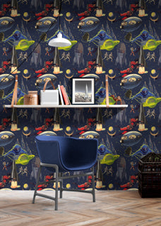 Retro re-makes of typical space opera characters. All Mind The Gap wallpapers are made on new generation non-woven substrate. Printed with eco-friendly inks, Mind The Gap wallpaper are easy to install on any wall type. When hanging the wallpaper, apply the ready-mix adhesive paste on the wall and hang the strips one by one by butting the edges together. The adhesive allows for a while moving the wallpaper strips, so that the wallpaper pattern continues correctly from one strip to another. All our wallpapers are tested and certified for fire rating according to the international legislation. More information and official reports regarding the fire rating are available on demand.