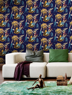 Retro re-makes of typical space opera characters. All Mind The Gap wallpapers are made on new generation non-woven substrate. Printed with eco-friendly inks, Mind The Gap wallpaper are easy to install on any wall type. When hanging the wallpaper, apply the ready-mix adhesive paste on the wall and hang the strips one by one by butting the edges together. The adhesive allows for a while moving the wallpaper strips, so that the wallpaper pattern continues correctly from one strip to another. All our wallpapers are tested and certified for fire rating according to the international legislation. More information and official reports regarding the fire rating are available on demand.