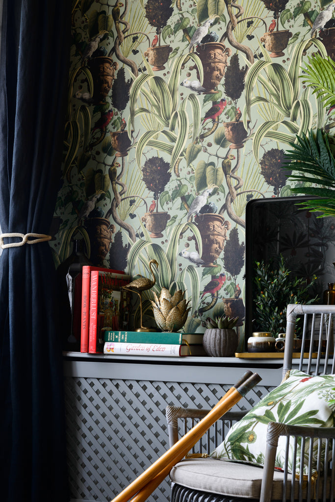 A rich tropical design inspired by the gardens belonging to the nobility from the colonial period in the Caribbean area. EXOTIC MENAGERIE is an exotic statement wallpaper with beautifully illustrated parrots and specific plants. Available in two colour versions: light and dark. All Mind The Gap wallpapers are made on new generation non-woven substrate. Printed with eco-friendly inks, Mind The Gap wallpaper are easy to install on any wall type. When hanging the wallpaper, apply the ready-mix adhesive paste on the wall and hang the strips one by one by butting the edges together. The adhesive allows for a while moving the wallpaper strips, so that the wallpaper pattern continues correctly from one strip to another. All our wallpapers are tested and certified for fire rating according to the international legislation. More information and official reports regarding the fire rating are available on demand.