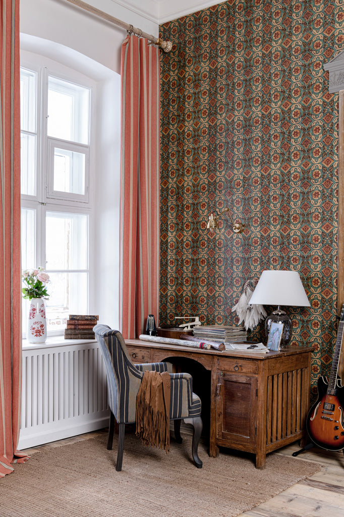 VARANASI was especially created to complement wallpapers from the free-spirited WOODSTOCK Designer collection and makes for a standalone statement piece too. All Mind The Gap wallpapers are made on new generation non-woven substrate. Printed with eco-friendly inks, Mind The Gap wallpaper are easy to install on any wall type. When hanging the wallpaper, apply the ready-mix adhesive paste on the wall and hang the strips one by one by butting the edges together. The adhesive allows for a while moving the wallpaper strips, so that the wallpaper pattern continues correctly from one strip to another. All our wallpapers are tested and certified for fire rating according to the international legislation. More information and official reports regarding the fire rating are available on demand.