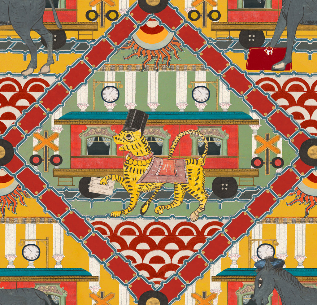 As the train pulls into the station, its dynamic energy shifts the mood of guests to one of excitement and anticipation as enchanting creatures’ parade down the platform in a striking spectacle against the grandeur of the neoclassical architecture of GARE DU NORD. Patterns and colours come together in a dazzling display bringing vivacity into the home, as the ornate beauty of the carriage itself takes centre stage. A bold and animated print that sparks interest and imagination each time you peruse it. All Mind The Gap wallpapers are made on new generation non-woven substrate. Printed with eco-friendly inks, Mind The Gap wallpaper are easy to install on any wall type. When hanging the wallpaper, apply the ready-mix adhesive paste on the wall and hang the strips one by one by butting the edges together. The adhesive allows for a while moving the wallpaper strips, so that the wallpaper pattern continues correctly from one strip to another. All our wallpapers are tested and certified for fire rating according to the international legislation. More information and official reports regarding the fire rating are available on demand.