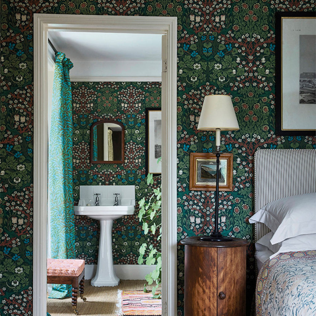 First designed in 1892 by J.H. Dearle, Blackthorn has been reproduced in authentic colours matching the original wallpaper samples, and its mottled appearance gives the wallpaper a hand-printed look.