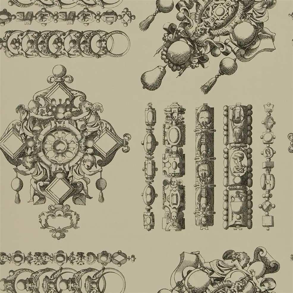 Elegantly arranged cut gemstones and jewellery delineate the loose chequered feel of this digitally printed wallcovering. The exotic design is available in a selection of colour themes, including one standout x-ray inversion, and both matt and metallic options. The non-woven grounds provide easy hanging and washability.