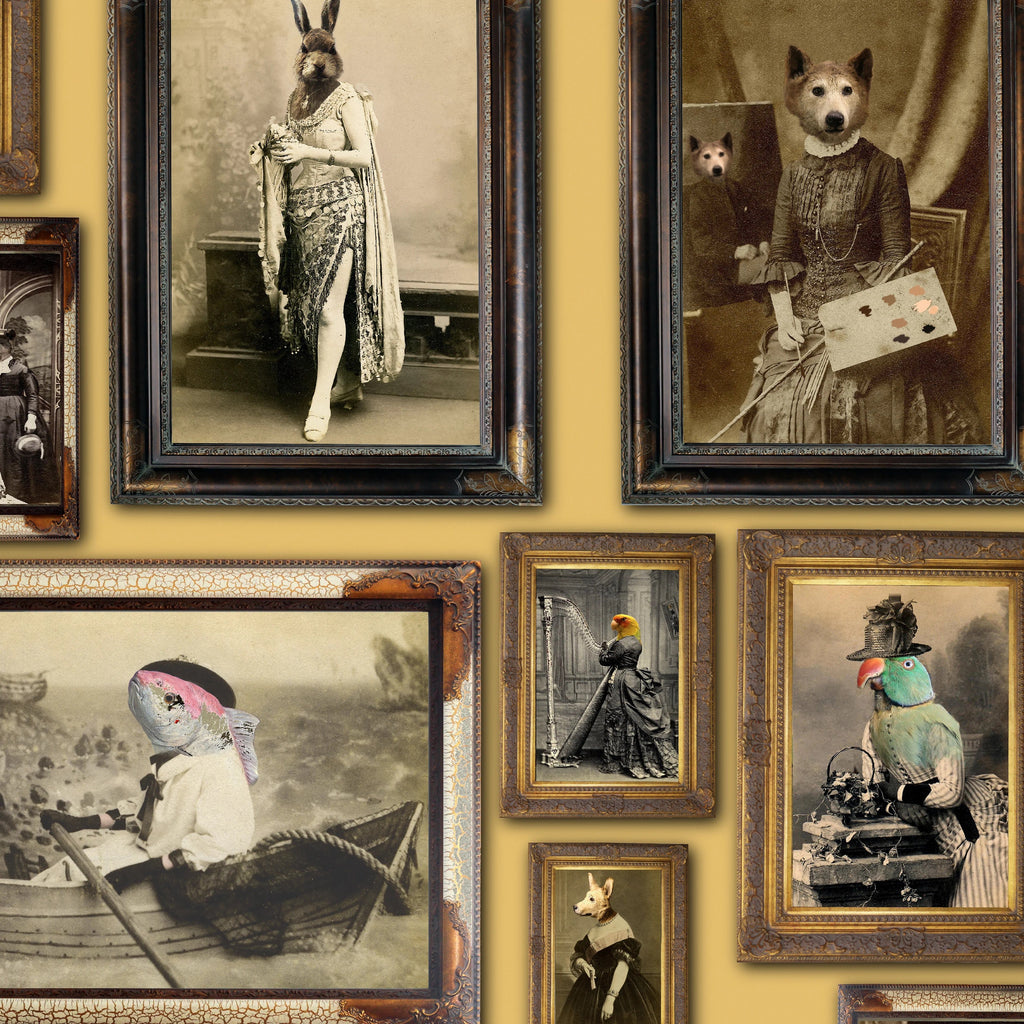 RetroAnimalPortraits, StatementWallArt, UniqueAnimalArt, VictorianStyleWallcoverings,
