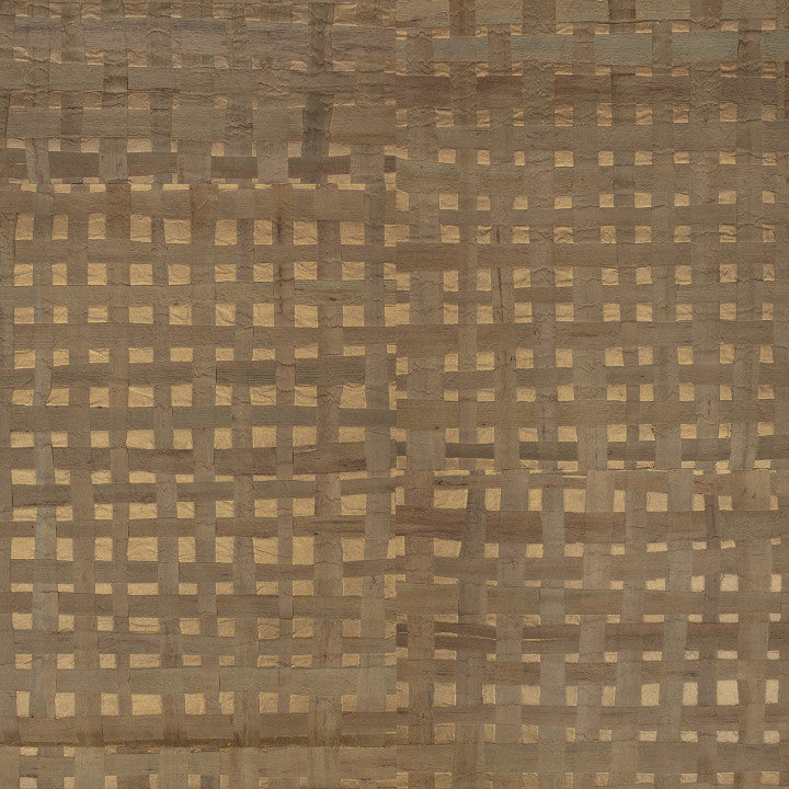 Description A lattice of handwoven water hyacinth has been mounted onto paper with a subtle sheen, creating a design of balanced contrast.