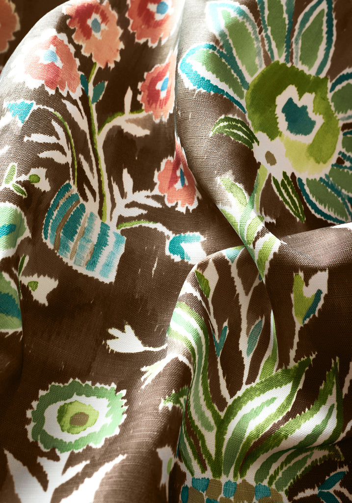 Introducing the Lilia Print fabric in Chocolate from the Acadia collection by Thibaut, available at Designer Wallcoverings. This exquisite fabric features a delicate floral leaves pattern, perfect for adding a touch of nature-inspired elegance to your home. The rich chocolate hue provides a warm and sophisticated backdrop, making it a versatile choice for a variety of design styles.