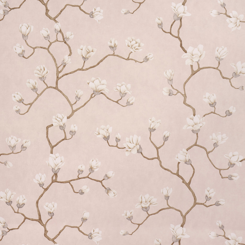 Indulge in the timeless elegance of MAGNOLIA TREE in DUSTY BLUSH, a stunning wallcovering from Schumacher's Garden collection. This exquisite design captures the delicate beauty of blossoming magnolia branches, rendered in a soft, romantic palette of dusty blush pinks, creams, and subtle greens. The intricate details and graceful composition create a serene and sophisticated ambiance, transforming any room into a haven of tranquility.