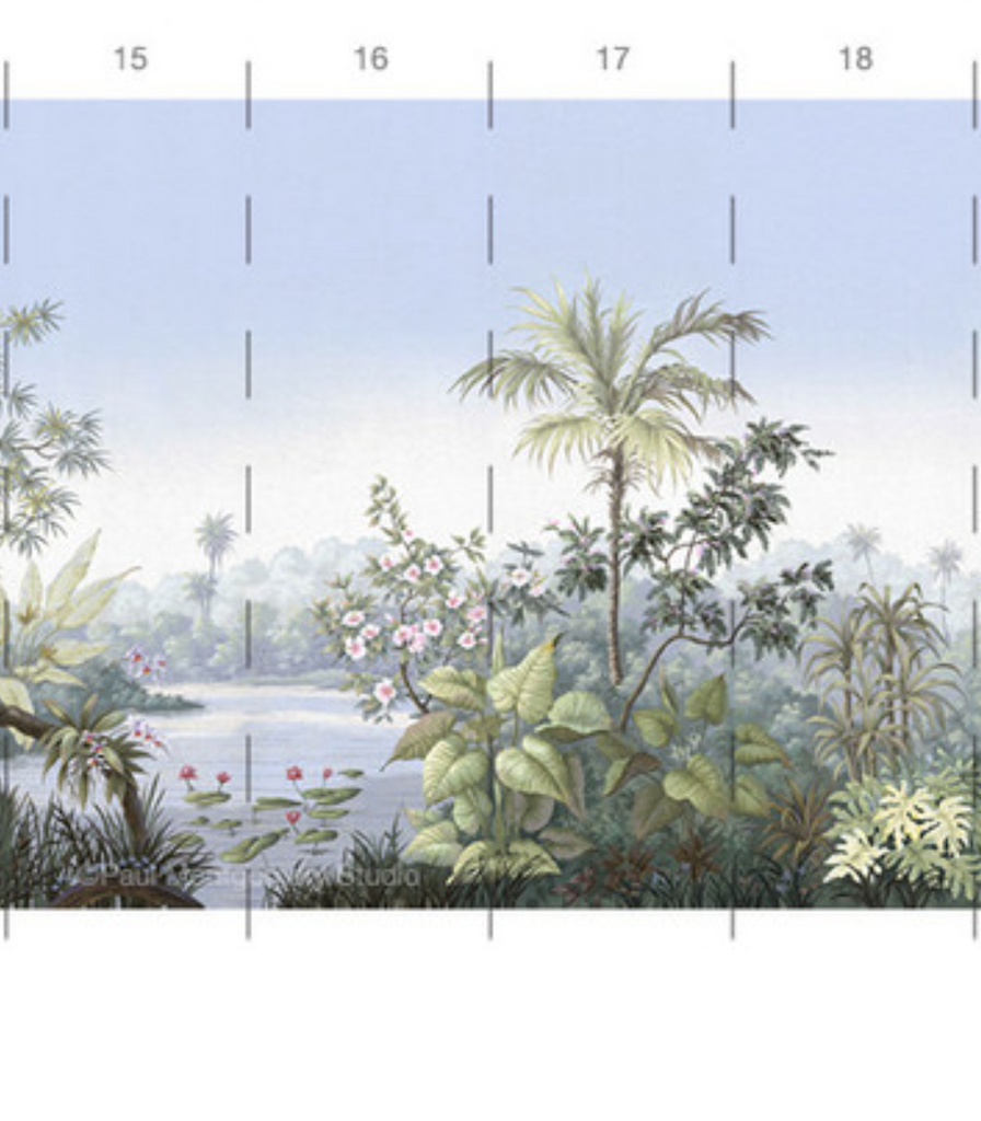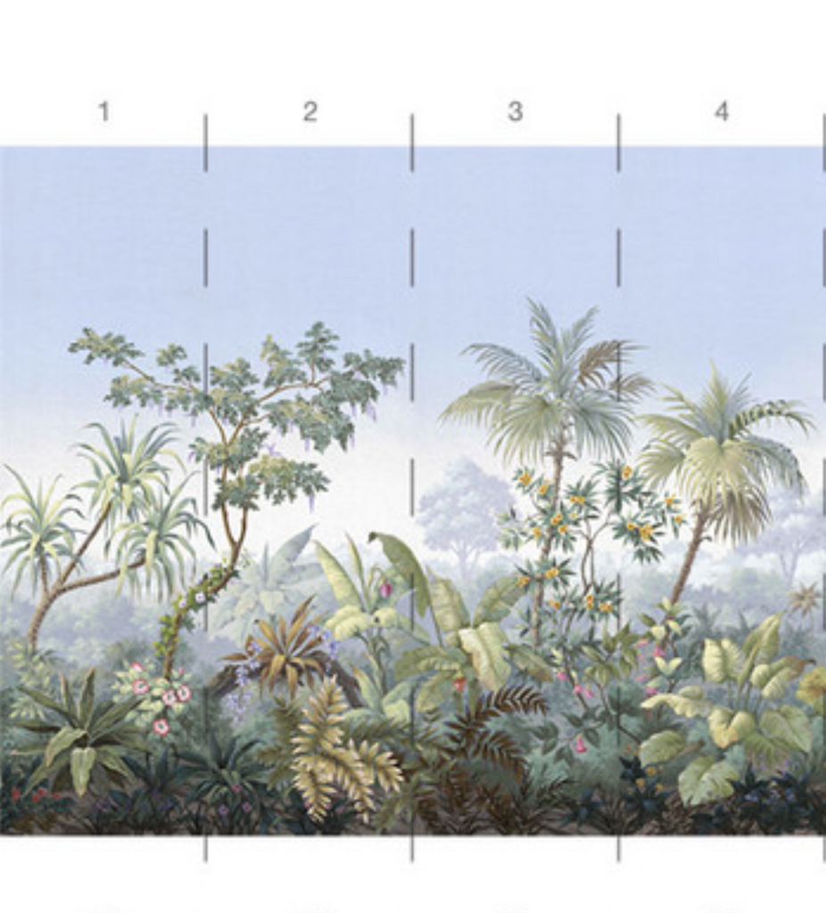 Lush palms, soft florals, and graceful birds unfold across the Floridana Classic Mural by Paul Montgomery Studios. A timeless escape. #luxurydesign #wallart #interiorstyle