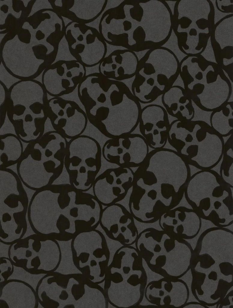 This wallcovering features a bold skull pattern in a monochromatic palette, creating a dramatic and edgy statement. Its dark and mysterious aesthetic makes it ideal for creating a unique and impactful atmosphere.