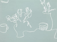 Tabletop Tide offers a serene and modern aesthetic, ideal for creating a calming atmosphere in commercial spaces. The delicate line art depicting floral arrangements and tabletop objects adds a touch of sophistication without overwhelming the space, making it suitable for various design schemes.