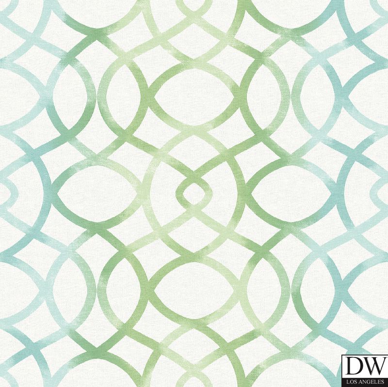 This emerald green and aqua ombre wallpaper has a beautiful trellis pattern that blends from one color to the next. The flowing lines create a stunning pattern that climbs up the wall like an organic vine.