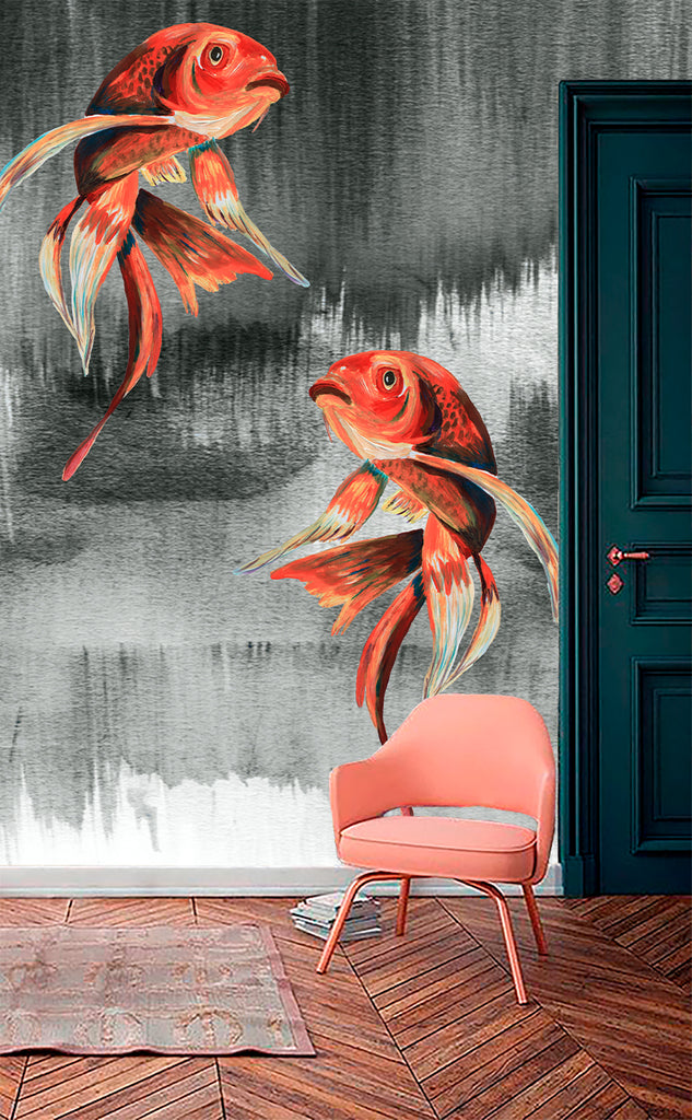 Koi Fish Art Dark Grey Mural | Catchii Netherlands Europe