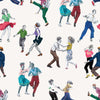 A vibrant conversational design, featuring beautiful hand drawn illustrations by Amy Hood. Inspired by vintage Lindy Hop dancers and set on a light airy background, this wallpaper is sure to make a statement in any interior!