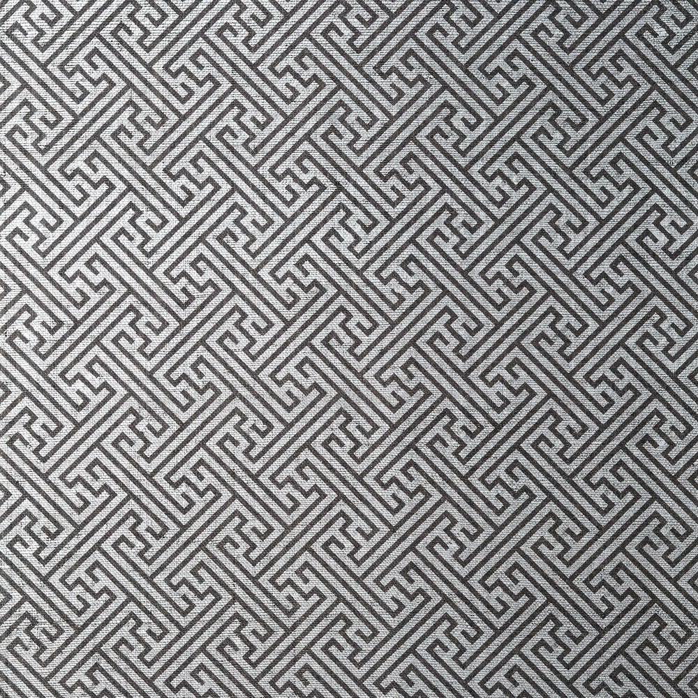 Charlotte Geomteric Fret Natural Raffia Black, Metallic Silver Wallpaper | Thibaut