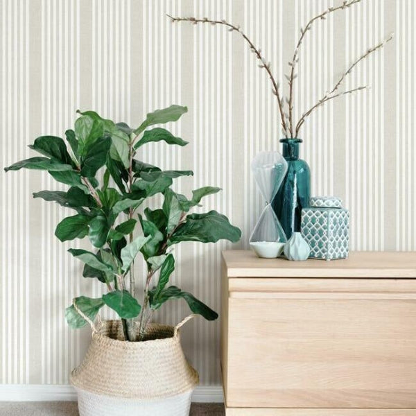 A fresh contemporary pattern, French Linen Stripe Wallpaper incorporates clean bright white with a lovely soft hue. This French Linen Stripe Wallpaper measures approximately 27 inches wide by 27 feet long, measuring approximately 60.