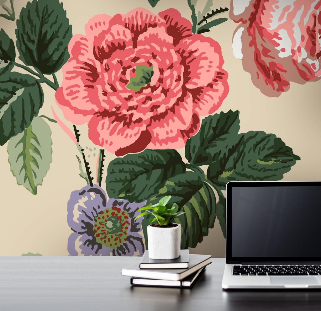 1950's, 1950's Vintage, 1950's Vintage Reproduction, 1951, Art Production, Available in Type 2 Vinyl, Beige, Brown, Cassandra, Commercial, Copyright, Coral, Custom, Custom Fabric Available, Custom Wallpaper, Customize, DW Bespoke Studios To Go, Exclusive Design, Floral, Green, Navy, Sand, Set Decorator, Set Design, Type 2, Type 2 Durable Vinyl, Wallcovering,KEYWORDS: