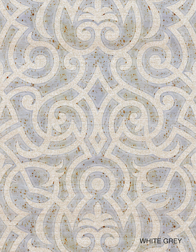 Damask 4 White Grey On Silver Sisal Wallpaper | Paul Montgomery