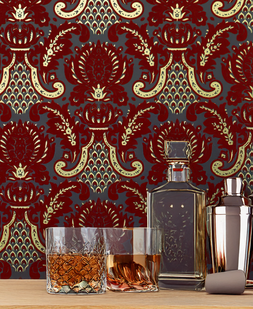 Bella's Windsor Flocked Velvet Wallpaper by Phillipe Romano features a luxurious velvet texture with an intricate, elegant pattern, adding depth and sophistication to any space. Perfect for refined interiors seeking timeless charm. #luxurywallpaper #elegantinteriors #texturedwalls