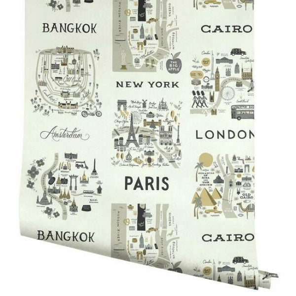 Coline Gray,Gold City Maps Modern Paper Wallpaper | Jeffrey Stevens
