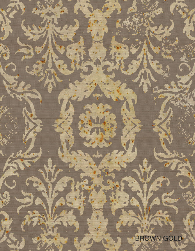 Antique Damask 1 Brown Gold On Silver Sisal Wallpaper | Paul Montgomery
