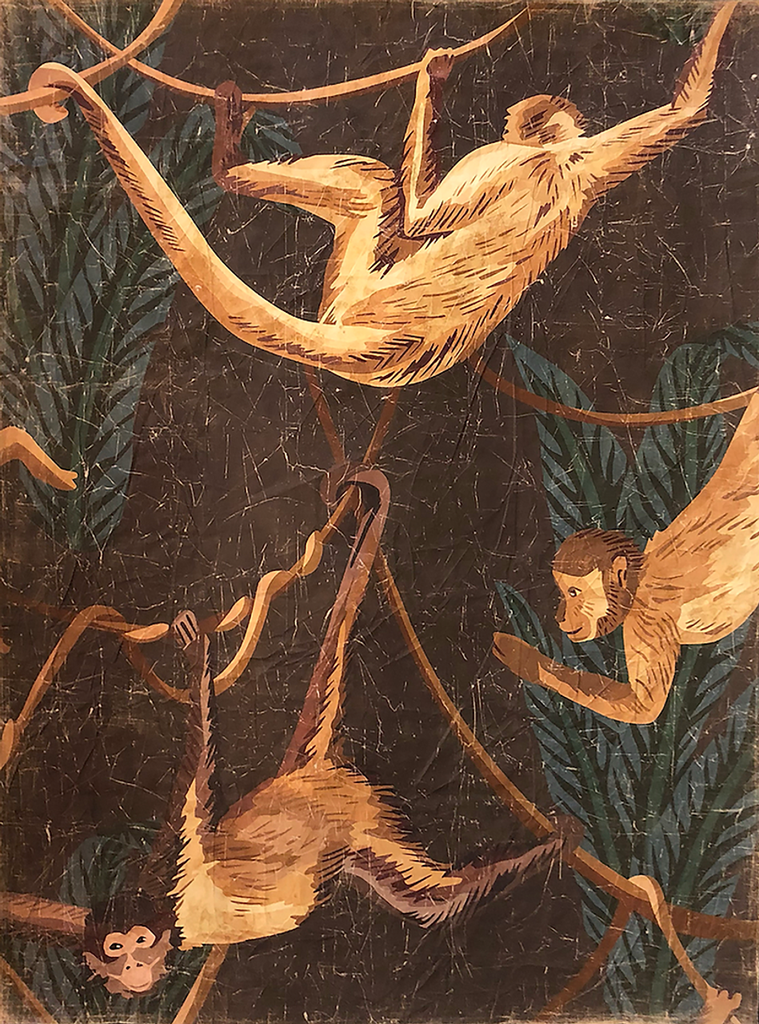 Playful monkeys swing gracefully through tropical palms in this elegant art print by Paul Montgomery. A lively, nature-inspired touch for refined interiors. #luxurydesign #tropicalstyle #artprints #interiorspaces
