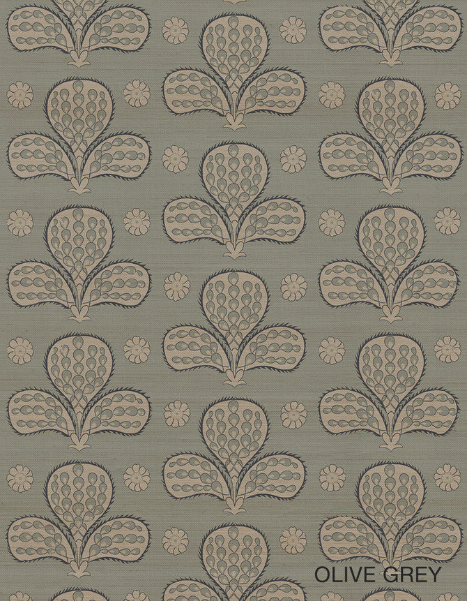 Peacock Tail Ottoman 6 Olive Grey Wallpaper | Paul Montgomery