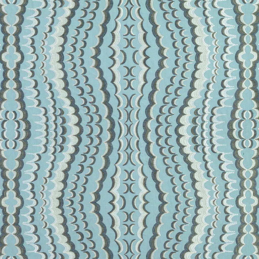 Ebru Embroidery Aqua Woven Fabrics | Thibaut Wallpaper
