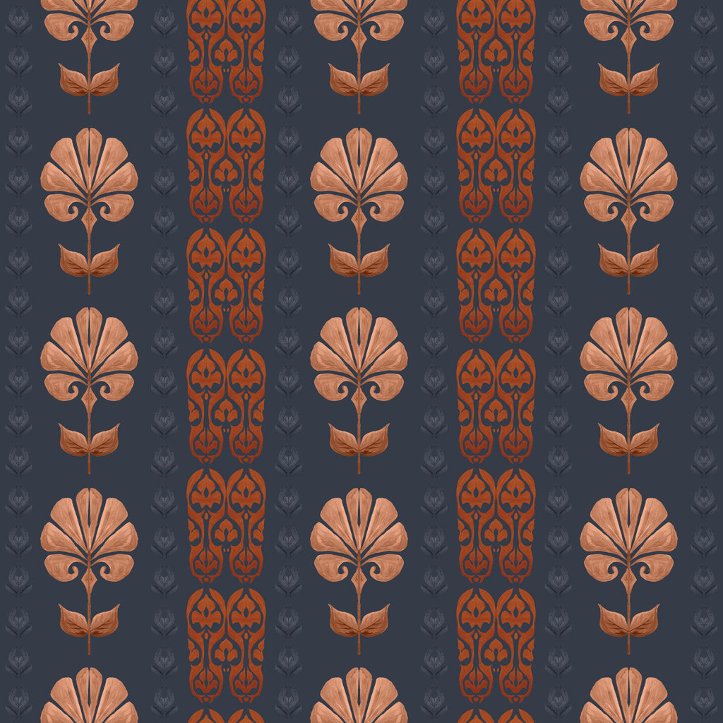 Ikat Flowers Dark Blue Wallpaper | Catchii Netherlands Europe The mix of flowers, colors and composition of this wallpaper will inspire you every day. Celebrate every day as a new beginning!