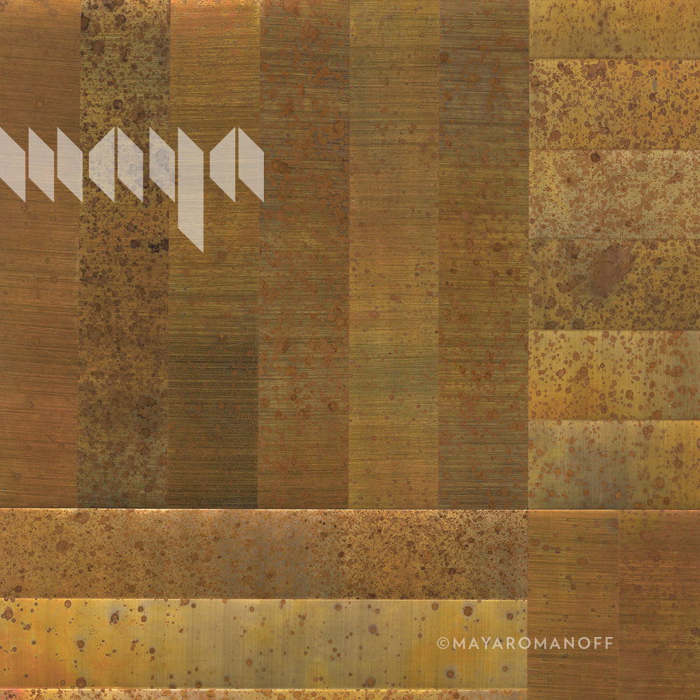 Genuine copper tiles are meticulously hand‑inlaid and patinaed using an ancient technique that creates a warm, permanent finish. The bright aluminum tiles are hand‑inlaid and brushed, creating a clean, modern look. Carefully preserved with beeswax, True Metals tiles retain their appearance over time. A portion of proceeds goes to support Aid to Artisans.