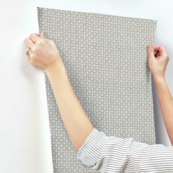 Cathy Silver Cottage Basket Metallic Silver Wallpaper | Jeffrey Stevens
