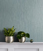 Textured vertical lines in agave green and metallic silver teal create a refined, natural elegance. A stunning look from Malibu Walls Type 2 Vinyls. #luxurywalls #moderninteriors #textileinspireddesign
