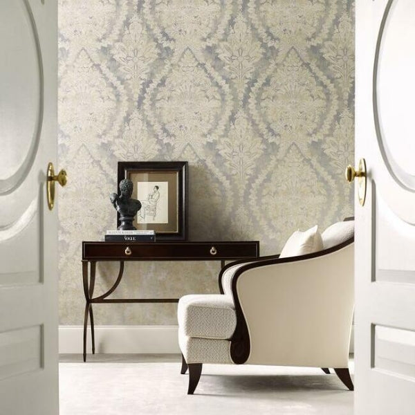 Pattern Charleston Damask's heritage acanthus leaves and soft texture exemplifies the essence of luxurious southern living. This Charleston Damask Wallpaper measures approximately 27 inches wide by 27 feet long, covering About 60.