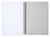 Our spiral notebooks are 6" x 8" in size and include 120 pages which are lined on both sides. The artwork is printed on the front cover which is made of thick paper stock, and the back cover is medium gray in color. The inside of the back cover includes a pocket for storing extra paper and pens.