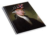 Our spiral notebooks are 6" x 8" in size and include 120 pages which are lined on both sides. The artwork is printed on the front cover which is made of thick paper stock, and the back cover is medium gray in color. The inside of the back cover includes a pocket for storing extra paper and pens.