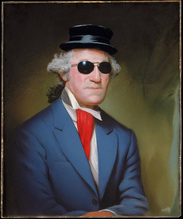 Beige, black hat, blue suit, Coral, Cream, fashion, george washington, historical, humor, Maroon, Navy, Novelty, Olive, portrait, red cravat, satirical, Silver, sunglasses, Teal, vintage, Wallcovering, washington,KEYWORDS: