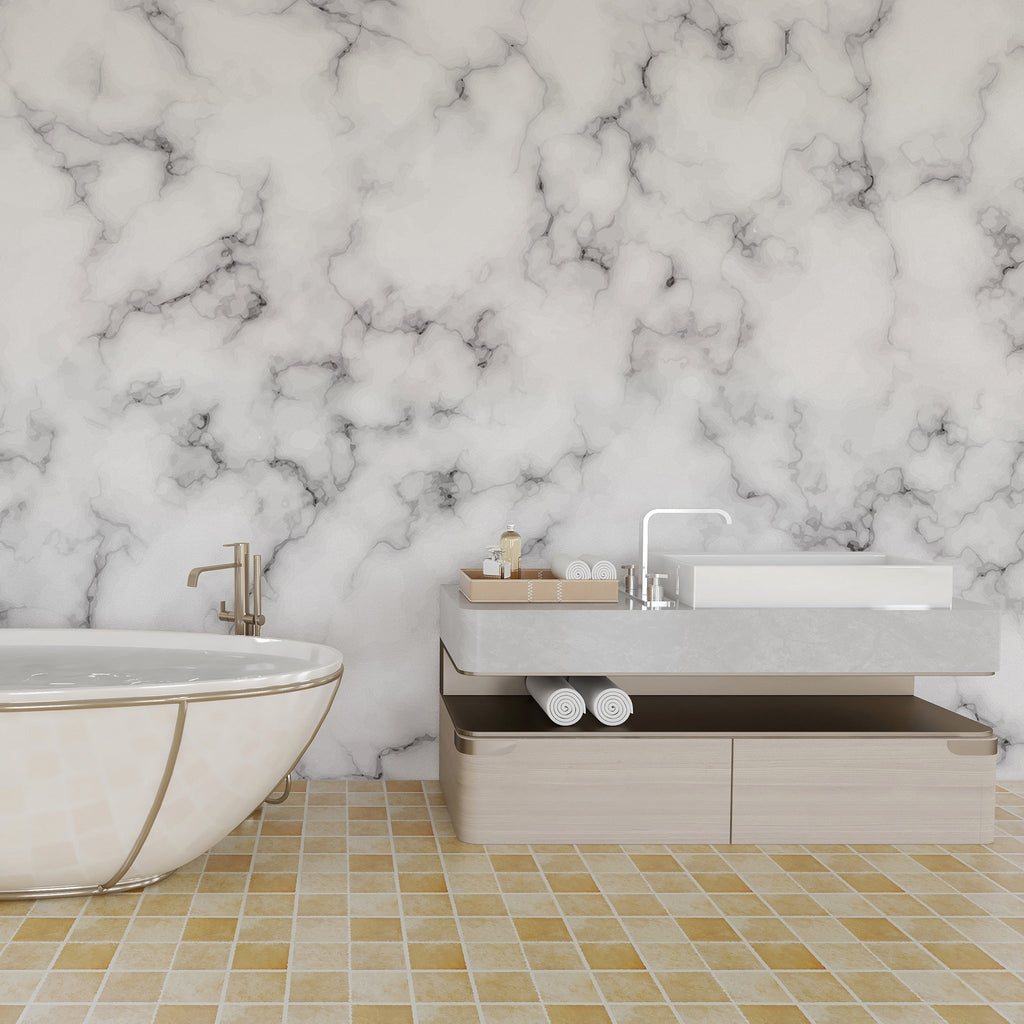 This unique wallpaper design features diffused gray veining over soft white fields, mimicking the essence of marble but with a stylized, contemporary twist. The result is a surface that feels organic yet artistic, ideal for high-end spaces that seek a minimalist look with a hint of visual complexity.