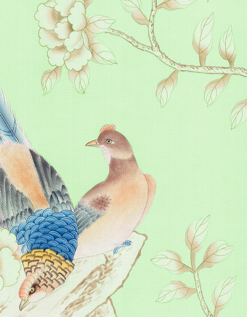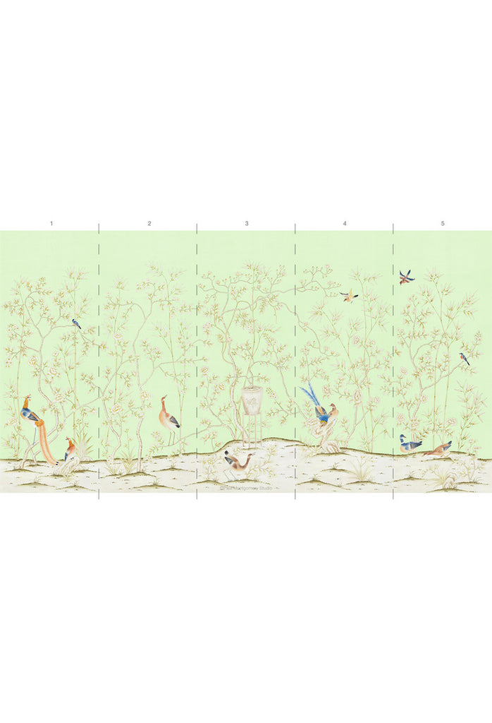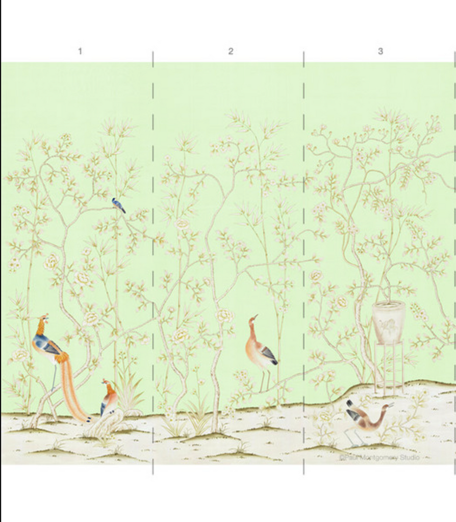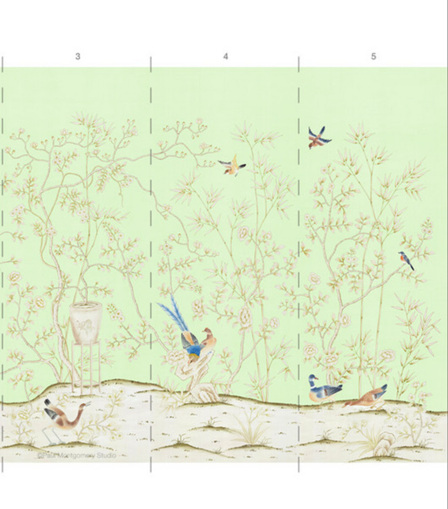 Anastasia depicts beautiful blooms and large birds. Mural has 5 panels before pattern repeats (Panel 5 matches panel 1 to repeat around a room as necessary), and is available in 5 background colors. 5 Panels Available in Full Length/Headers/Footers, Sold in individual Panels, Width: 36", Design Height: 96", Total Height: 84", Anastasia,Paul Montgomery Studios