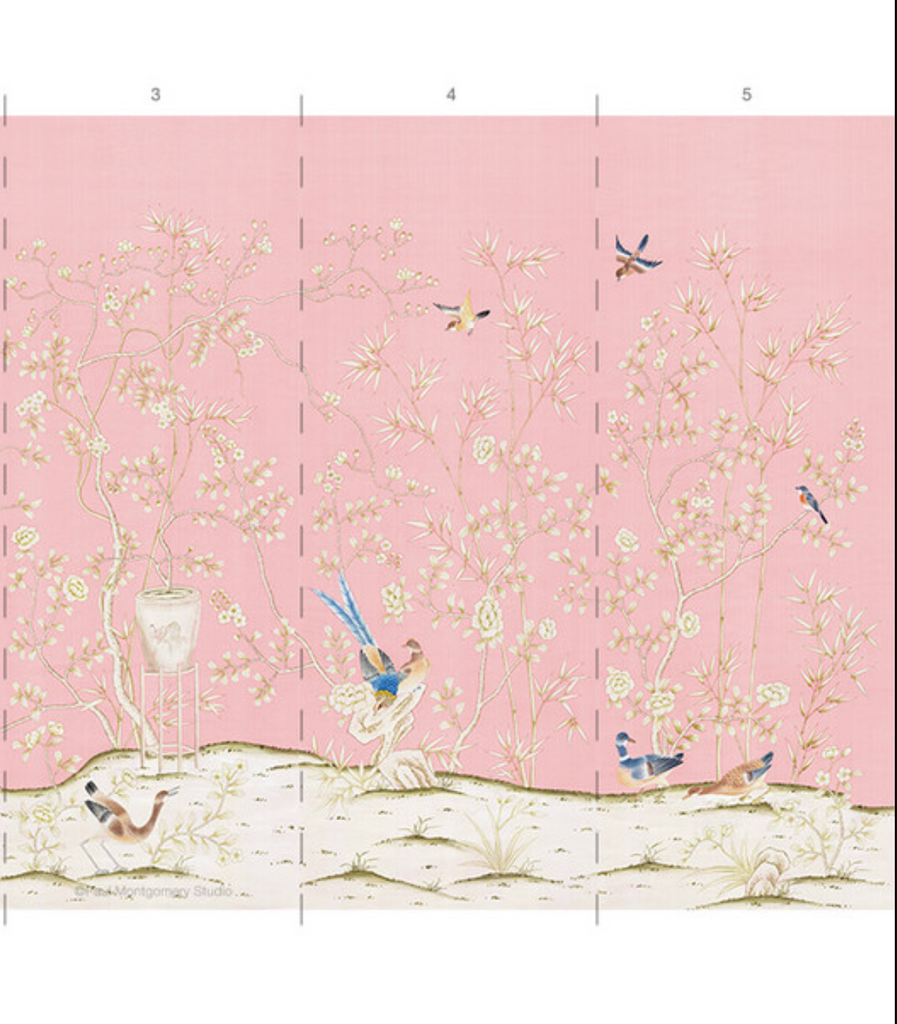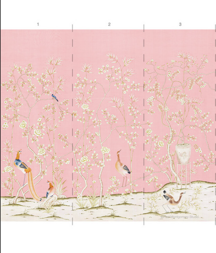 Anastasia depicts beautiful blooms and large birds. Mural has 5 panels before pattern repeats (Panel 5 matches panel 1 to repeat around a room as necessary), and is available in 5 background colors. 5 Panels Available in Full Length/Headers/Footers, Sold in individual Panels, Width: 36", Design Height: 96", Total Height: 84", Anastasia,Paul Montgomery Studios