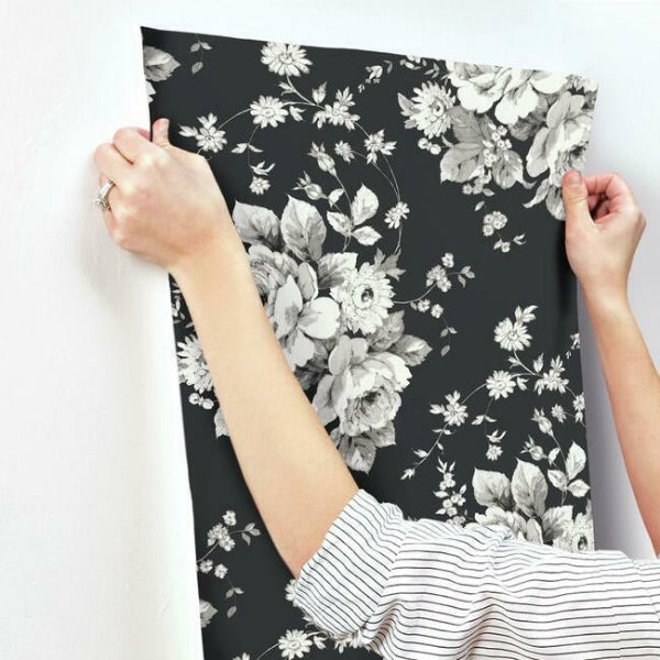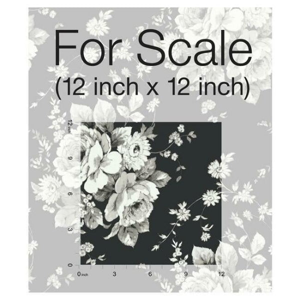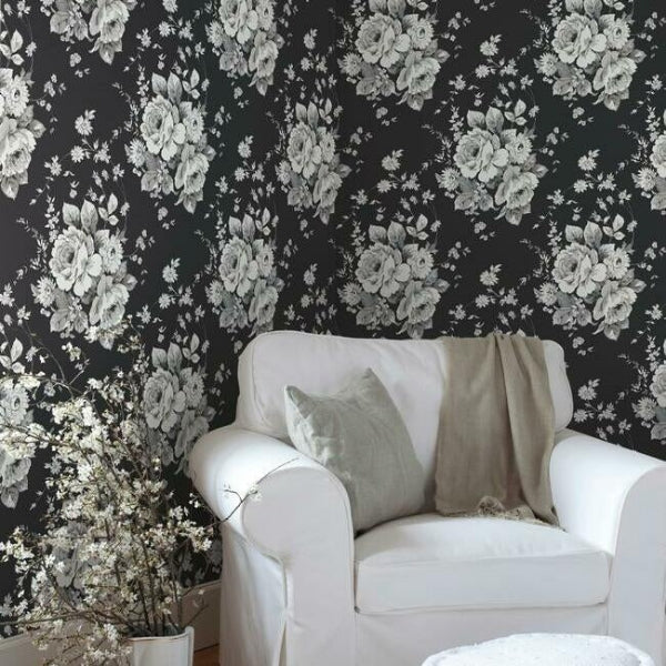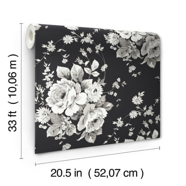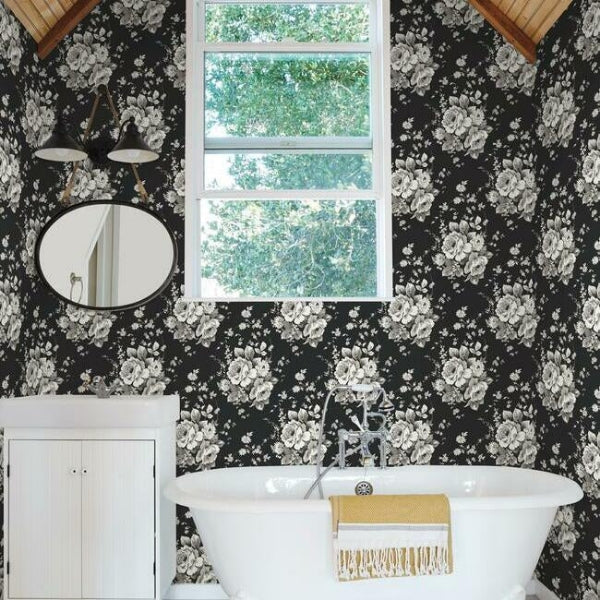 Harriet Black,Gray Heritage Rose Botanical Beige Black Wallpaper | Jeffrey Stevens