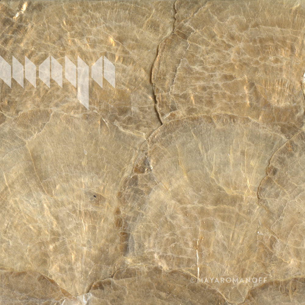 Mother of Pearl Aphrodite is a hand‑crafted veneer of layered, round capiz shells. Easy to install, Aphrodite turns corners and has a stain‑resistant coating, while highlighting the natural texture of the shell. In addition to wall installation, use Aphrodite as a furniture inset, backsplash, in a display case, or to wrap columns. Hand‑finished in our Chicago studio