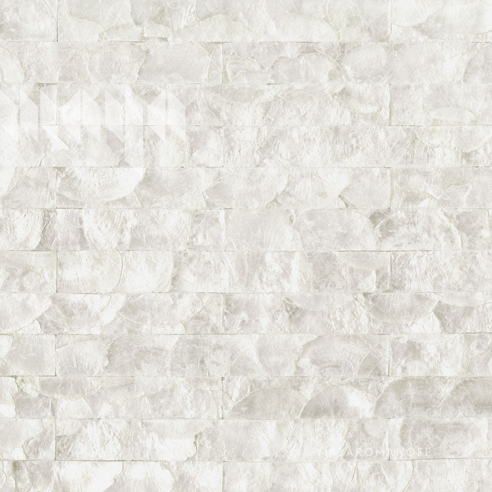 Genuine hand‑inlaid capiz shell tiles comprised of one‑inch strips. Mother of Pearl’s stain‑resistant finish is durable, cleanable and flexible. When pasted, tiles have the capability to turn corners and wrap columns. Install in running bond, horizontal or vertical.