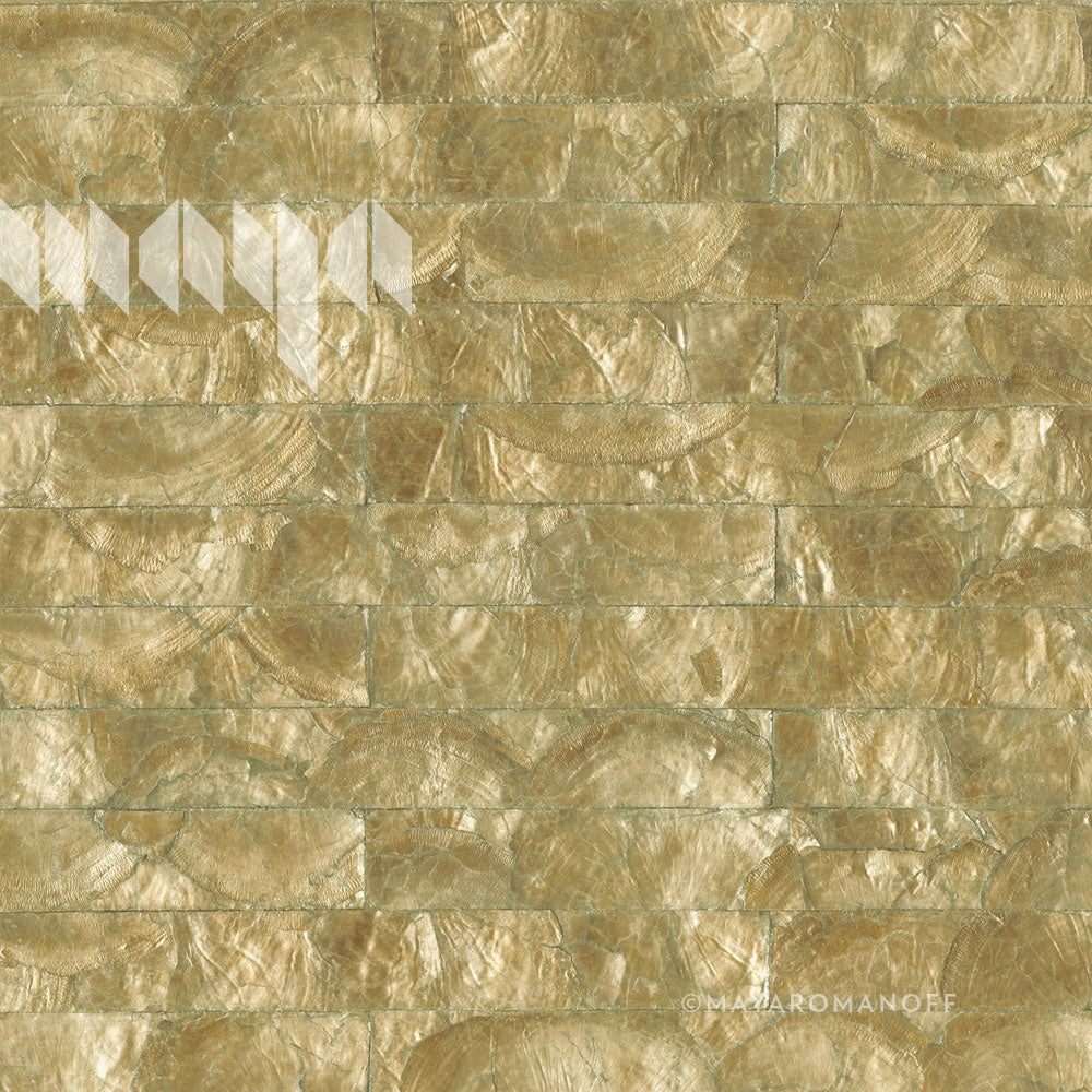 Genuine hand‑inlaid capiz shell tiles comprised of one‑inch strips. Mother of Pearl’s stain‑resistant finish is durable, cleanable and flexible. When pasted, tiles have the capability to turn corners and wrap columns. Install in running bond, horizontal or vertical.