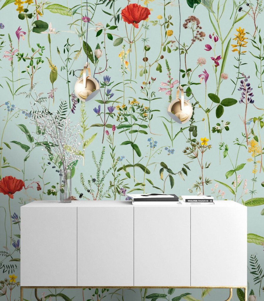 Decorative vintage floral illustrations on aquamarine-blue background, which can create a wall full of color and joy. The design is printed over 3 rolls. All Mind The Gap wallpapers are made on new generation non-woven substrate. Printed with eco-friendly inks, Mind The Gap wallpaper are easy to install on any wall type. When hanging the wallpaper, apply the ready-mix adhesive paste on the wall and hang the strips one by one by butting the edges together. The adhesive allows for a while moving the wallpaper strips, so that the wallpaper pattern continues correctly from one strip to another. All our wallpapers are tested and certified for fire rating according to the international legislation. More information and official reports regarding the fire rating are available on demand.