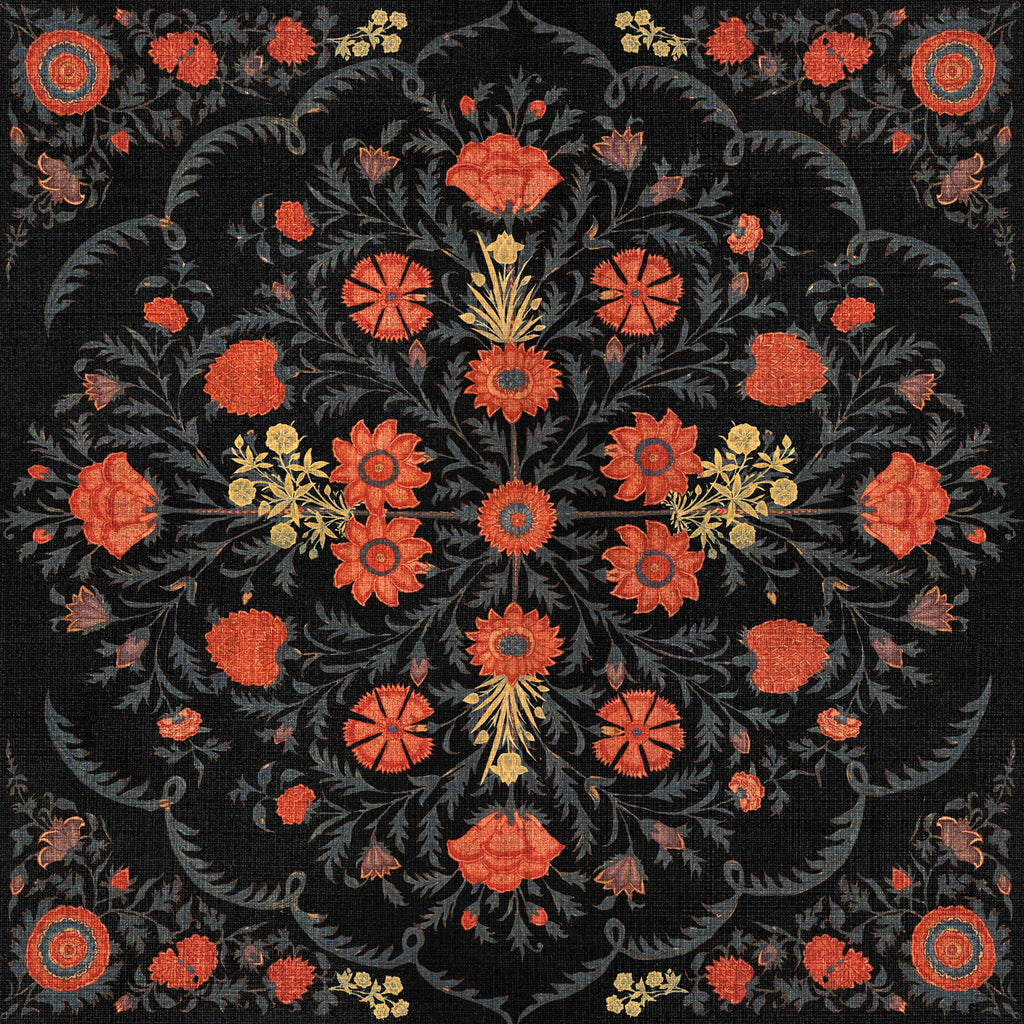 A captivating indian floral design on a black background. All Mind The Gap wallpapers are made on new generation non-woven substrate. Printed with eco-friendly inks, Mind The Gap wallpaper are easy to install on any wall type. When hanging the wallpaper, apply the ready-mix adhesive paste on the wall and hang the strips one by one by butting the edges together. The adhesive allows for a while moving the wallpaper strips, so that the wallpaper pattern continues correctly from one strip to another. All our wallpapers are tested and certified for fire rating according to the international legislation. More information and official reports regarding the fire rating are available on demand.
